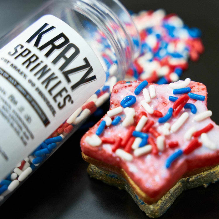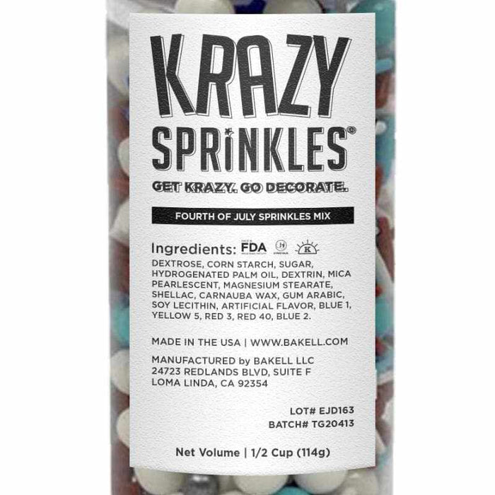 Celebrate Independence Day with cookies, cupcakes and other customized treats using our new 4th of July Krazy Sprinkles Combo Pack. If you like some serious choice when you step into the kitchen to whip up confections, step right up, because this cool collection of 100% edible, FDA-compliant sprinkles will satisfy everyone's sweet tooth.