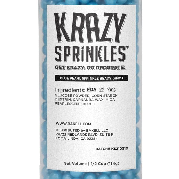 Our Krazy Sprinkles® "Blue Pearl 4mm Beads" are totally amazing! Krazy Sprinkles® from the Bakell® company brings you the absolute best in both quality & value and is the trusted brand in the industry! 100% edible and made only with FDA approved ingredients, our sprinkles come in a variety of colors, shapes and sizes! If you want to read the FAQ, learn about how to use the product and more, click here